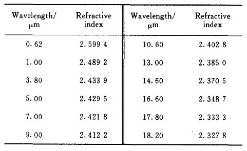? ? ? ? 表l ZnSe晶體折射率隨波長的變化
