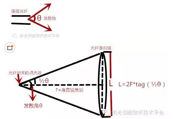 從能量光纖出來的光,是一個點光源,是有發(fā)散角(θ)的,這個參數(shù)一般可以查到的。如果我們把這個點光源放置于光纖準(zhǔn)直鏡的焦點上,我們知道:從一個聚焦鏡(準(zhǔn)直鏡其實際上把聚焦鏡反過來用)的焦點上發(fā)出的光,經(jīng)過聚焦鏡之后就變成了平行光。很多人問我經(jīng)過某個準(zhǔn)直鏡之后出來的光束直徑是多大,今天我在這里給大家答案,就是2F*tag(?θ),如發(fā)散角是10°,F(xiàn)=150mm,那么從準(zhǔn)直鏡出來的光束直徑就=2*150*tag(5°)=26.2466mm。這個公式對于使用光纖傳輸?shù)恼耒R是焊接機(jī)選擇振鏡是有參考意義的。繼續(xù)往下講就是光纖切割機(jī)行業(yè)人士想了解的東西了。經(jīng)過光纖準(zhǔn)直鏡之后,激光進(jìn)入光纖切割機(jī)的聚焦鏡,按照理論來說,準(zhǔn)直鏡焦距÷聚焦鏡焦距=聚焦后能量密度相對于之前的密度比,如:準(zhǔn)直鏡焦距是75mm,聚焦鏡焦距是150mm,75÷150=?,就是說經(jīng)過聚焦鏡之后聚焦光斑的面積相比于從剛從能量光纖出來的點光源的面積大一倍,能量密度是原來的?。有人問,為什么要能量密度降低干啥啊,能量密度集中不是更好嗎?這里有幾個原因,第一:如果聚焦鏡的焦距越短,聚焦鏡的焦深就越淺,焦深淺就容易導(dǎo)致切不深。第二: