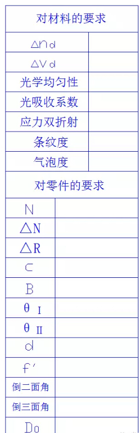 光學(xué)零件的外形尺寸、材料、技術(shù)要求及其特性