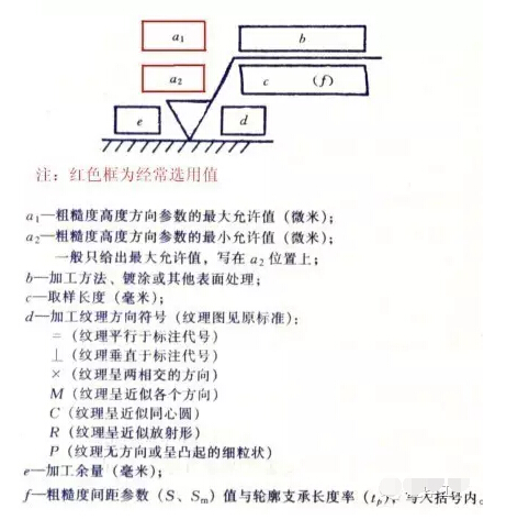 ?①是通過去除表面所得到的表面,表面高低不平度為3.2微米??赏ㄟ^銑磨得到。