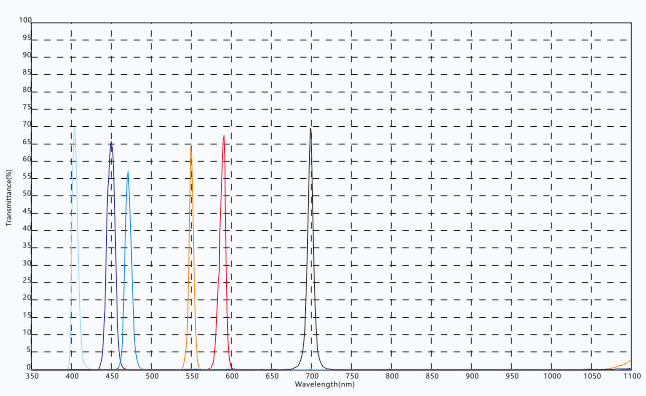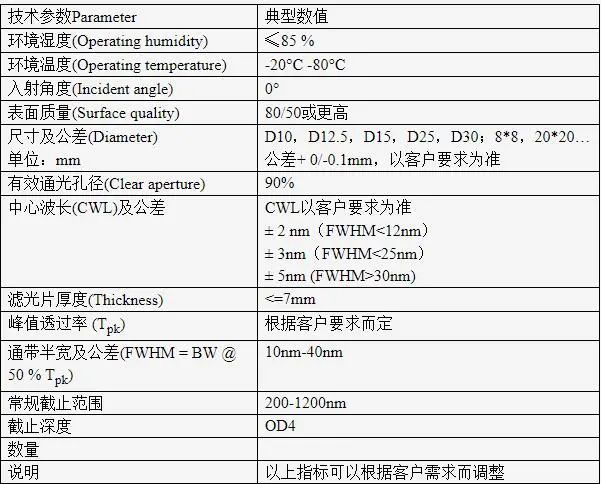 也就是這種濾光片在特定的波段允許光信號通過,而偏離這個波段以外的兩側(cè)光信號被阻止,窄帶濾光片的通帶相對來說比較窄,