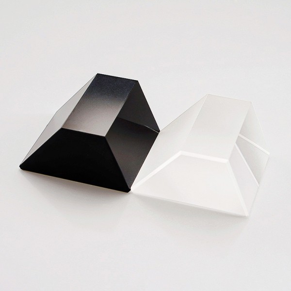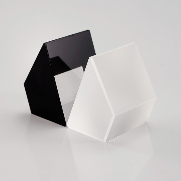 梯形棱鏡是一種像旋轉(zhuǎn)器。光線經(jīng)過此棱鏡后,此像被顛覆。另外,使此棱鏡以其光軸為軸旋轉(zhuǎn)時,像的旋轉(zhuǎn)角為棱鏡旋轉(zhuǎn)角的兩倍。一般而言,梯形棱鏡是利用臨界角原理實(shí)現(xiàn)內(nèi)部全反射,所以其視場角有限。同時,保持反射面清潔和使用平行光很重要。不鍍膜的梯形棱鏡主要用于光機(jī)系統(tǒng)內(nèi)做圖象旋轉(zhuǎn);鍍膜的梯形棱鏡主要是在反射面鍍鋁反射膜,在入射面鍍增透膜,用于成像系統(tǒng)內(nèi)。