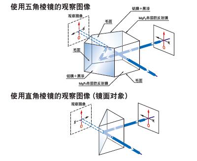 通過鏡面的2次反射,使鏡面對稱的反射圖像變換為與物體相同的正立圖像。 在照相機(jī)進(jìn)化為數(shù)碼相機(jī)之前,為了使圖像不形成鏡面對稱,使用五角棱鏡將物體發(fā)出的光線直角偏轉(zhuǎn)。 也作為激光噴墨器的直角標(biāo)。