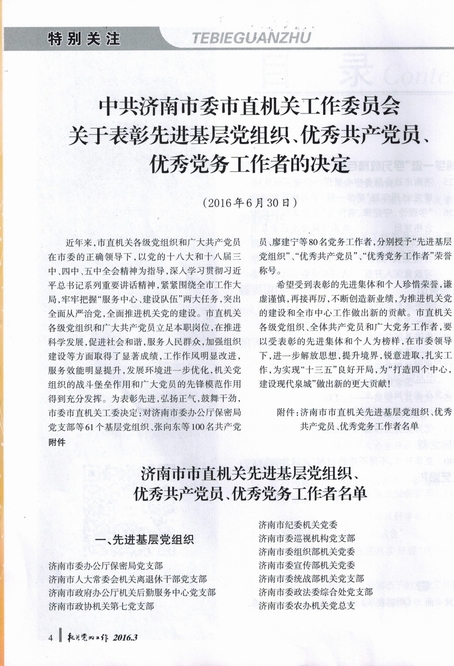 關于轉發(fā)《中共濟南市委市直機關工作委員會關于表彰先進基層黨組織、優(yōu)秀共產黨員、 優(yōu)秀黨務工作者的決定》的通知
