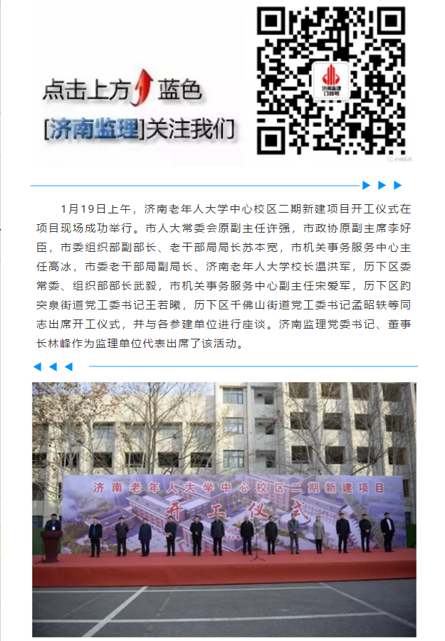 濟(jì)南監(jiān)理參加濟(jì)南老年人大學(xué)中心校區(qū)二期新建項(xiàng)目開(kāi)工儀式