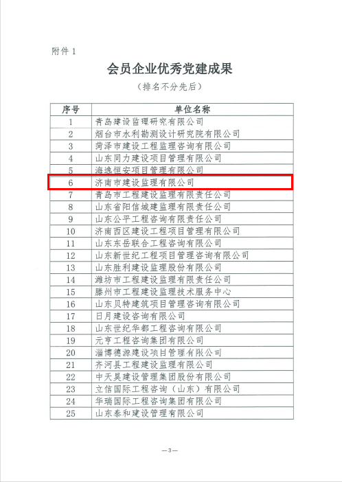 喜報(bào)!濟(jì)南監(jiān)理榮獲山東省建設(shè)監(jiān)理與咨詢協(xié)會(huì)“會(huì)員優(yōu)秀企業(yè)黨建成果”及“優(yōu)秀黨員典型案例”通報(bào)表?yè)P(yáng)