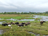 9月20日下午,在巢湖市柘皋河濕地,一群牛背鷺伴著幾頭水牛一起覓食。牛背鷺時而騰空翻飛,時而與牛相視,時而躍上牛背,構(gòu)成一幅牛鷺相戀、形影不離的自然和諧圖。當日下午,記者在現(xiàn)...