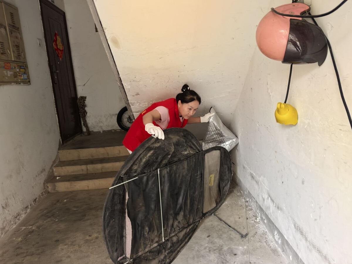 10月11日上午,平湖社區(qū)組織老黨員、紅色小管家、社區(qū)工作者、物業(yè)人員及街道網(wǎng)格員齊聚濱湖南苑小區(qū)。大家分工協(xié)作,有序開展環(huán)境整治:清理公共區(qū)域雜草垃圾、搬運樓道雜物、規(guī)整“飛線”、鏟除毀綠菜地……大家穿梭于樓宇間,行動高效利落。