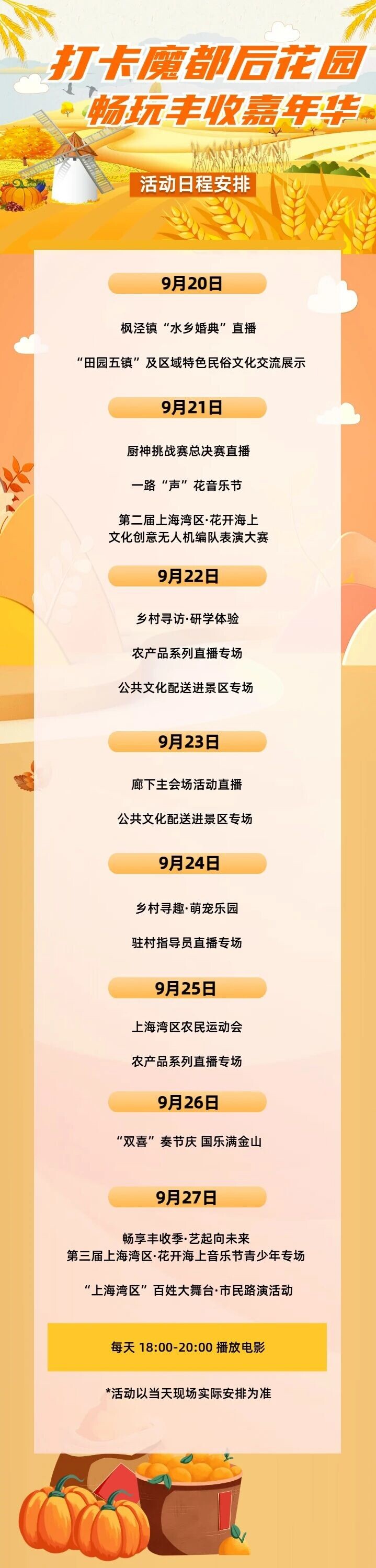 ??9月23日豐收節(jié)當天,慶典活動將以《時序交響·傳承》《味覺綿長·創(chuàng)新》《城鄉(xiāng)無界·交融》《智慧沃土·發(fā)展》《豐收共輝·未來》五大篇章為主線,融合短片展映、非遺展演、新農(nóng)人風采展示、區(qū)域公用品牌推介、電商助農(nóng)倡議、數(shù)據(jù)賦能農(nóng)業(yè)簽約、農(nóng)業(yè)科技路演等多種形式,系統(tǒng)呈現(xiàn)上海在推動農(nóng)耕文化傳承、農(nóng)產(chǎn)品產(chǎn)銷融合、城鄉(xiāng)資源對接以及農(nóng)業(yè)科技創(chuàng)新等方面的實踐與成效。本次豐收節(jié)特別突出“智慧農(nóng)業(yè)”元素,通過成果分享、項目路演,數(shù)據(jù)展示等環(huán)節(jié),展示上海在推動農(nóng)業(yè)現(xiàn)代化過程中的創(chuàng)新實踐。此外,活動現(xiàn)場還將設(shè)立全市優(yōu)質(zhì)農(nóng)產(chǎn)品及鄉(xiāng)村美食展,方便市民品嘗和購買地產(chǎn)優(yōu)質(zhì)農(nóng)產(chǎn)品,體驗舌尖上的豐收味道。