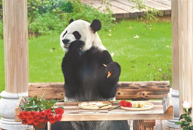 來自重慶動(dòng)物園的熊貓飼養(yǎng)員俎奶爸和項(xiàng)奶爸送上了來自重慶動(dòng)物園的生日祝福。已經(jīng)在無錫陪伴“加悅悅”近四個(gè)月的俎奶爸與它即將面臨分別:“前段時(shí)間處在特殊時(shí)期,采食量和次數(shù)會(huì)有一定降低,我們的飼養(yǎng)團(tuán)隊(duì)、專職獸醫(yī)都在密切關(guān)注它的健康狀況,這兩天看到它采食量上來了,吃得特別香,我也可以放心回重慶了。”接替他的項(xiàng)奶爸已經(jīng)提前進(jìn)入工作狀態(tài):“這幾天已經(jīng)在熟悉場(chǎng)館和大熊貓的個(gè)體情況,打算在今年冬天讓它的體重適度增長(zhǎng)。”