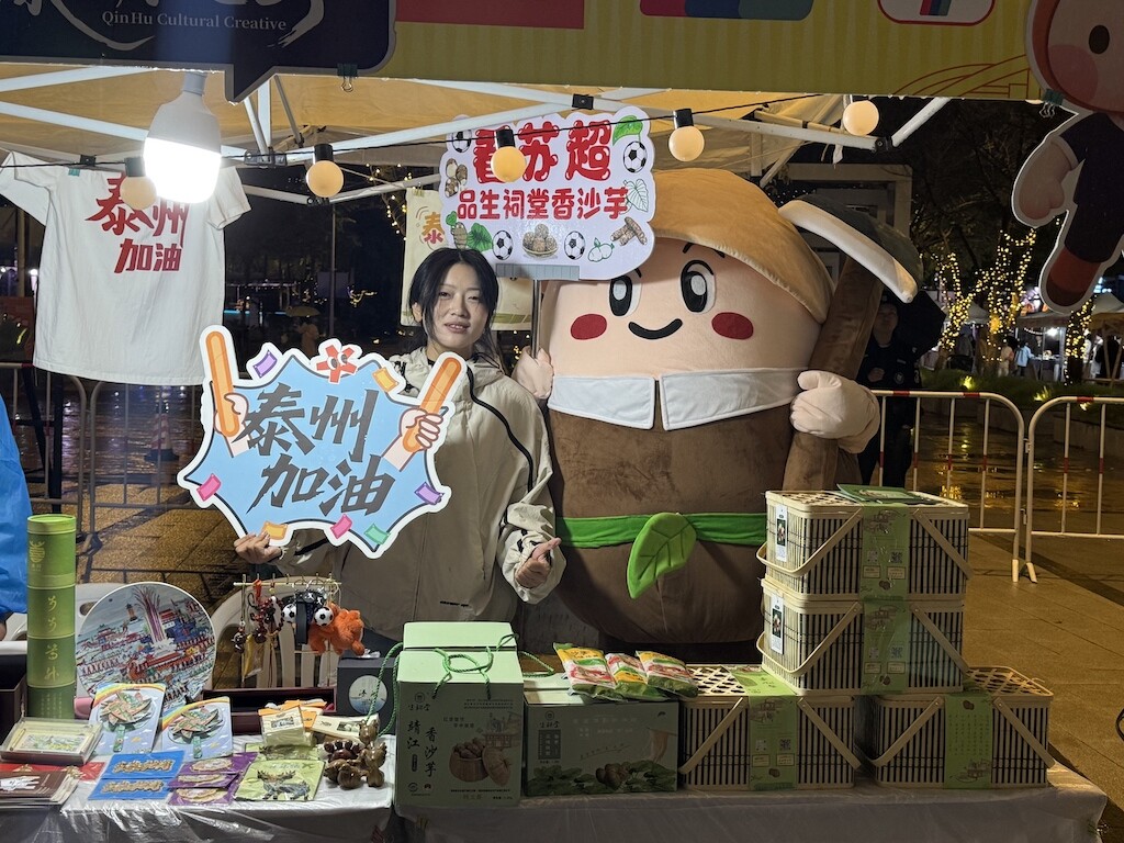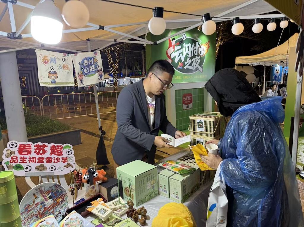 10月18日晚,“蘇超”半決賽在南京市奧體中心體育場(chǎng)舉辦,最終泰州隊(duì)?wèi)?zhàn)勝南京隊(duì)挺進(jìn)蘇超決賽。江蘇省靖江現(xiàn)代農(nóng)業(yè)產(chǎn)業(yè)園緊抓賽事流量,組織香沙芋推介與銷售團(tuán)隊(duì)赴南京參加“蘇超”觀賽嘉年華活動(dòng),推介泰州靖江農(nóng)產(chǎn)品,吸引了眾多南京市民及球迷到展臺(tái)打卡消費(fèi)。