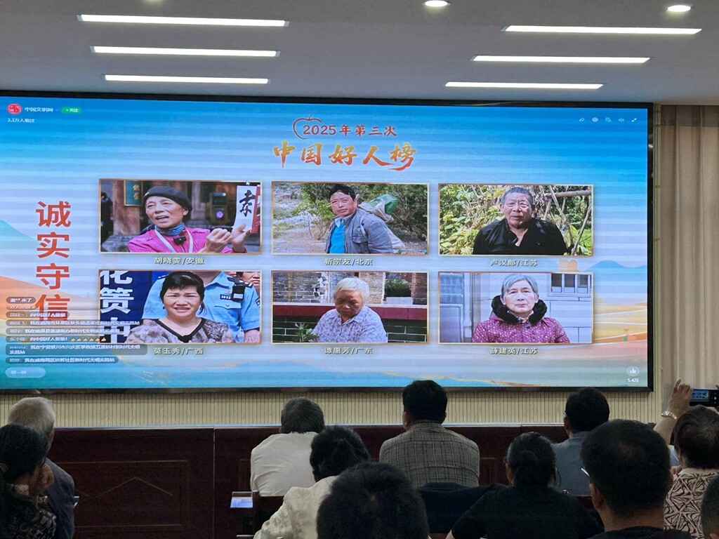 10月15日上午,2025年第三次“中國(guó)好人榜”發(fā)布儀式暨全國(guó)道德模范與身邊好人現(xiàn)場(chǎng)交流活動(dòng)在新疆維吾爾自治區(qū)阿克蘇地區(qū)舉辦。我市孤山鎮(zhèn)廣陵村村民盧漢郎榮登“中國(guó)好人榜”誠(chéng)實(shí)守信榜單。