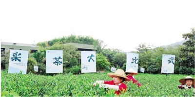 比賽當天上午,“雙手提采”大比武在龍井茶園拉開大幕。