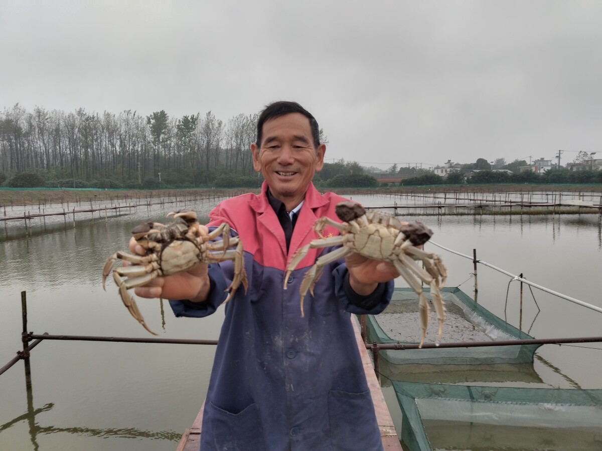 10月17日,清晨5點,基地負責人丁善玉帶著工人在蟹塘起籠收蟹。工人們熟練地提起網(wǎng)箱,一只只青殼白肚的大閘蟹在網(wǎng)中揮螯舞爪。“今年氣候適宜,螃蟹產(chǎn)量高、品質(zhì)好,個頭大的螃蟹能有半斤重,預計總產(chǎn)量能突破兩萬斤!按40~50元/斤的價格來算,產(chǎn)值超過100萬元。”丁善玉抓起一只肥蟹,豐收的喜悅寫在臉上。在他身后,工人們正麻利地將剛出水的螃蟹分揀、過秤、捆扎、包裝,準備發(fā)往合肥周邊的農(nóng)貿(mào)市場。