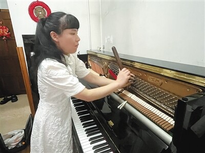 對三位盲人調(diào)律師的技藝,鄭女士豎起大拇指?!拔叶伎瓷盗耍∷麄冋娴暮馨?,我很佩服他們?!编嵟空f,這架鋼琴以前都是外孫在彈,最近,她自己也想學(xué)習(xí)彈鋼琴,但覺得太難了?!皬倪@幾個年輕人身上,我看到了面對困難的勇氣,我要向他們學(xué)習(xí)!”