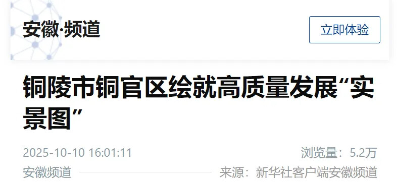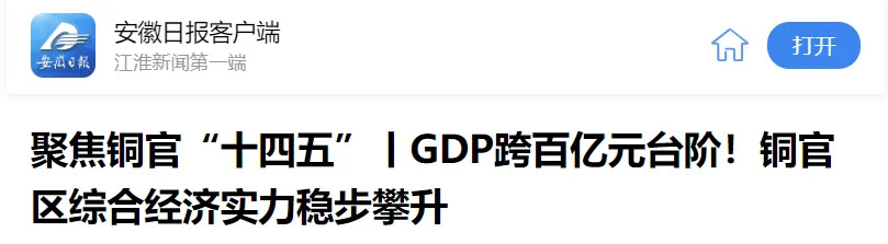 安徽日報以《GDP跨百億元臺階!銅官區(qū)綜合經(jīng)濟實力穩(wěn)步攀升》為題,重點報道了銅官區(qū)構(gòu)建現(xiàn)代產(chǎn)業(yè)體系的卓越成效。