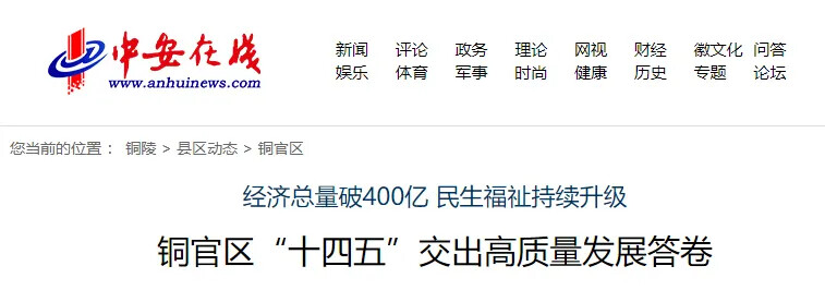 中安在線以《經(jīng)濟總量突破400億元 民生福祉持續(xù)升級——銅官區(qū)“十四五”交出高質(zhì)量發(fā)展答卷》為題,生動呈現(xiàn)了銅官區(qū)在發(fā)展中保障和改善民生的豐碩成果。