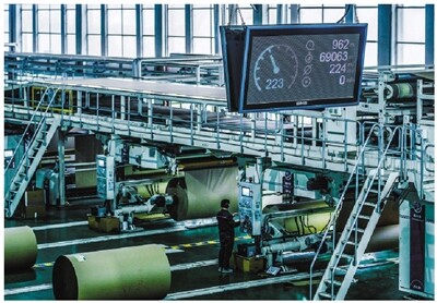 大勝達(dá)智能工廠偌大的車間,只有一個(gè)員工。產(chǎn)線設(shè)備正在高速運(yùn)轉(zhuǎn),快速把包裝紙“吃”進(jìn)去。